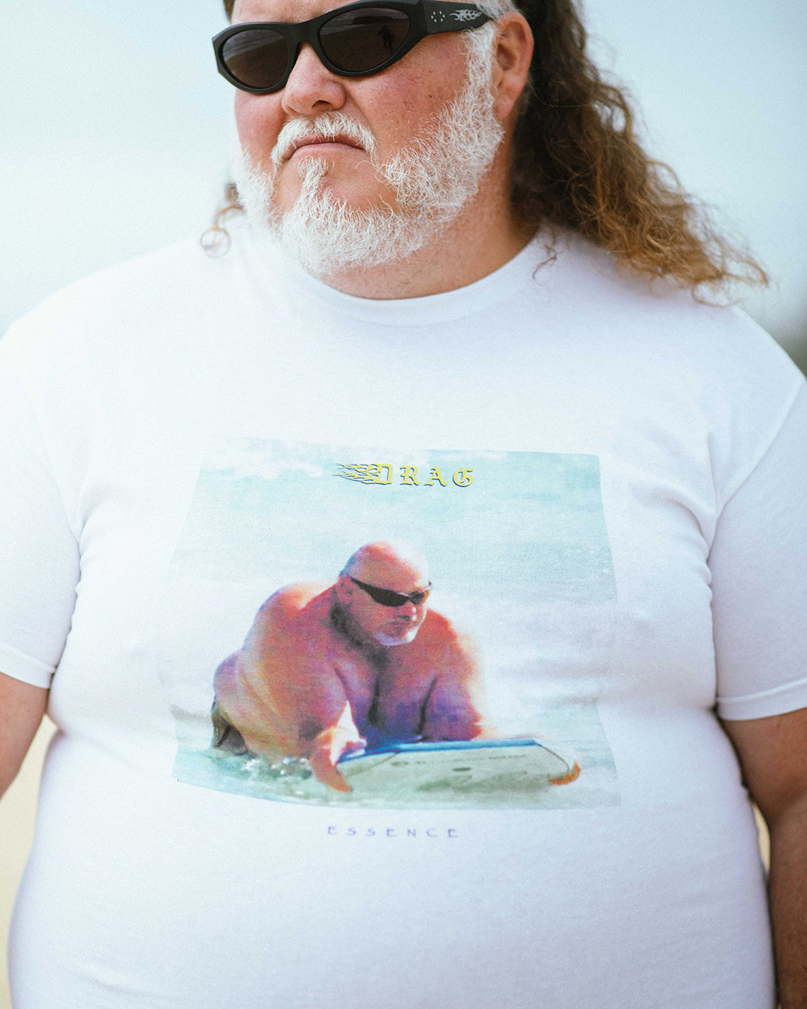 THE ESSENCE OF DRAG. Greased down, washed up and digitally printed directly onto your very own gunt for essential tradwear.
