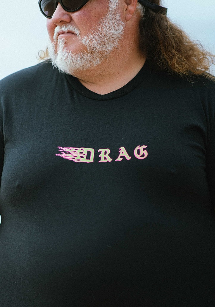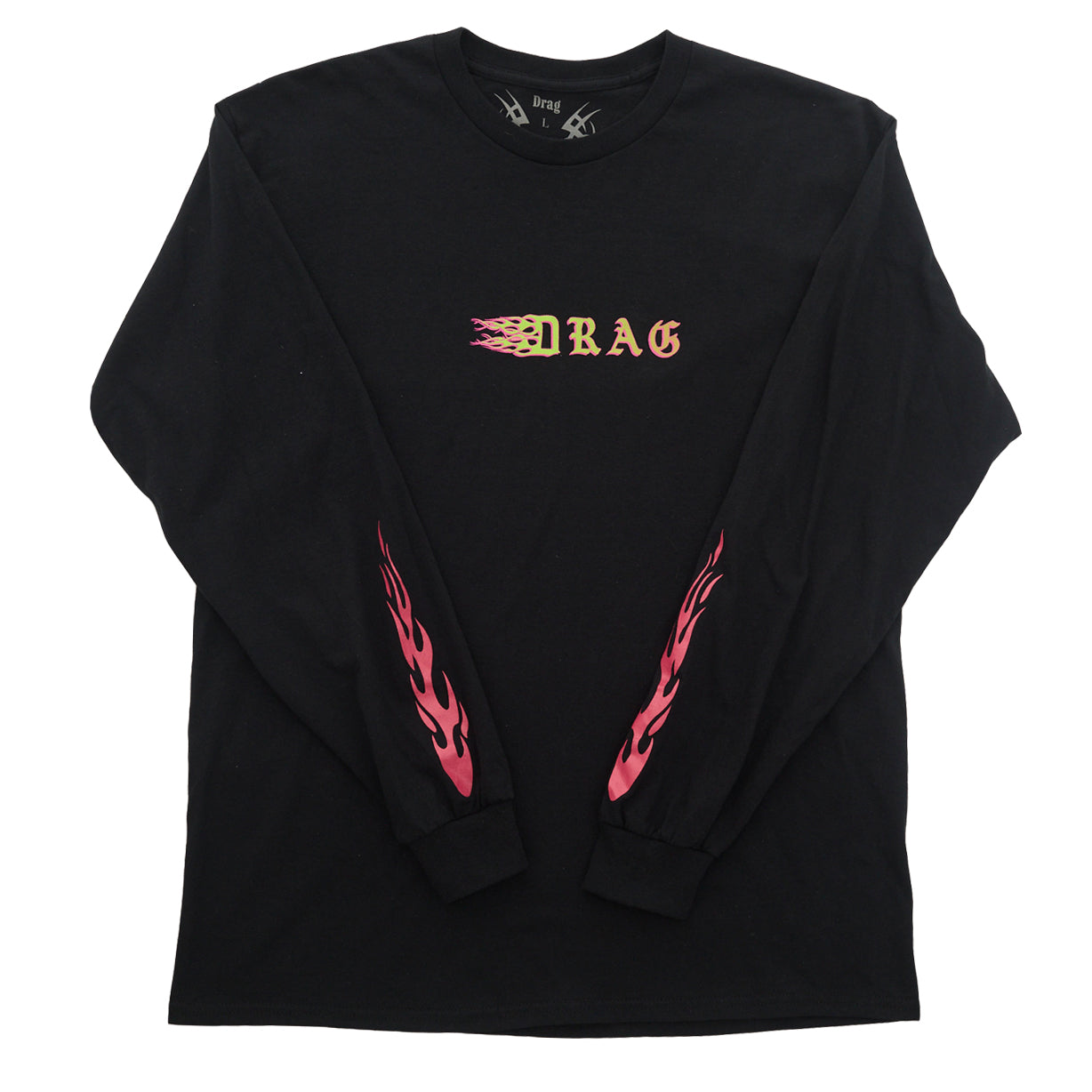 Introducing the TRAD ELDER LS tee. Featuring centre gradation flaming chest print, internal back neckpiece, and to ensure there were no doubts as to its authenticity, a big flaming tough c#nt sleeve. A DRAG must have item for whenever you need to make your presence felt.