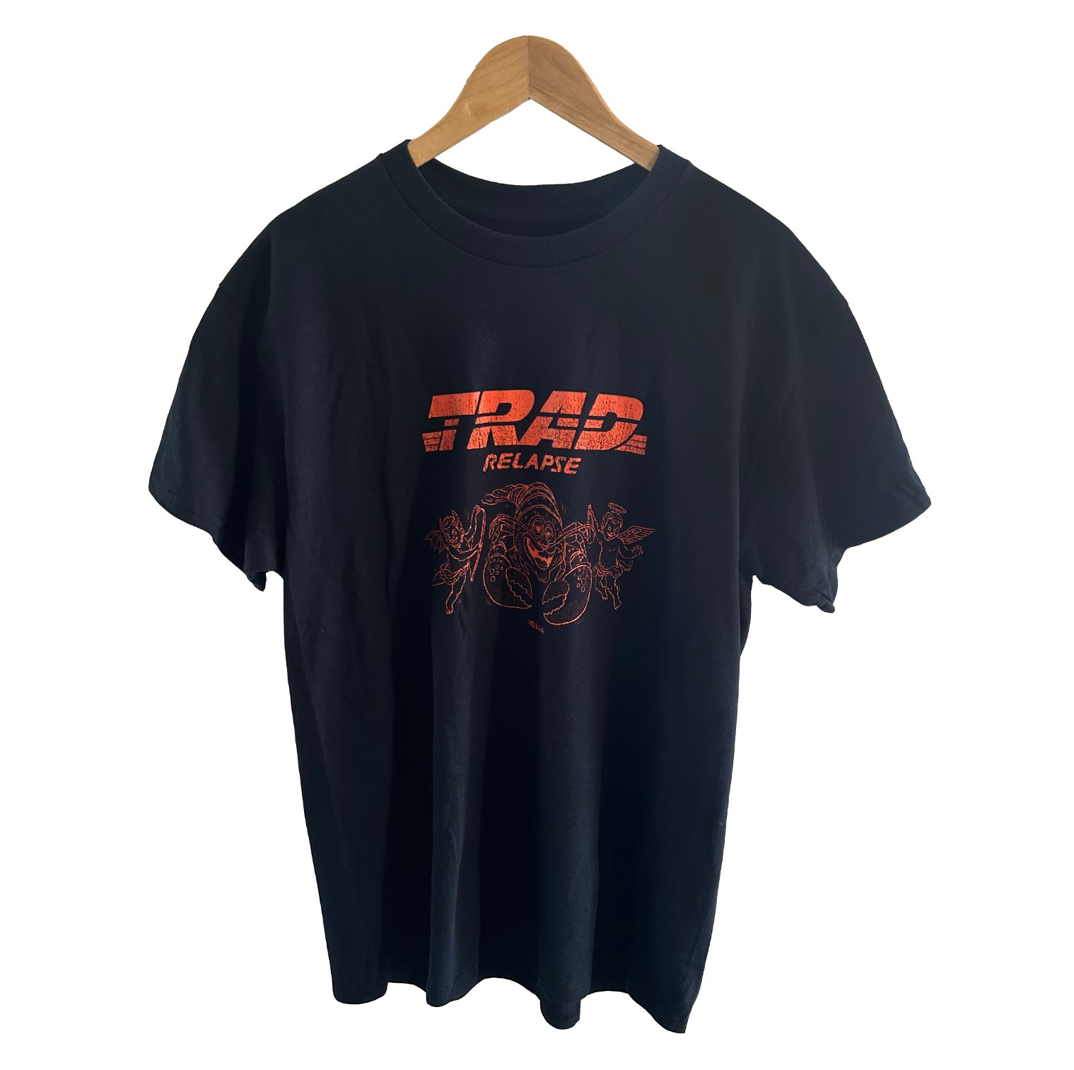 Embrace your impending relapse with the TRAD RELAPSE TEE drawn by serial horizontal relapser Simon Perini.